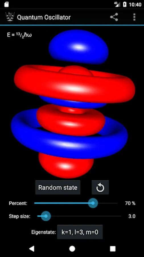 This app visualizes the eigenstates of the three-dimensional quantum harmonic oscillator by drawing the cross-section surfaces of the square of the wave function in OpenGL, using the Marching Cubes algorithm. The spherical coordinate basis is employed.