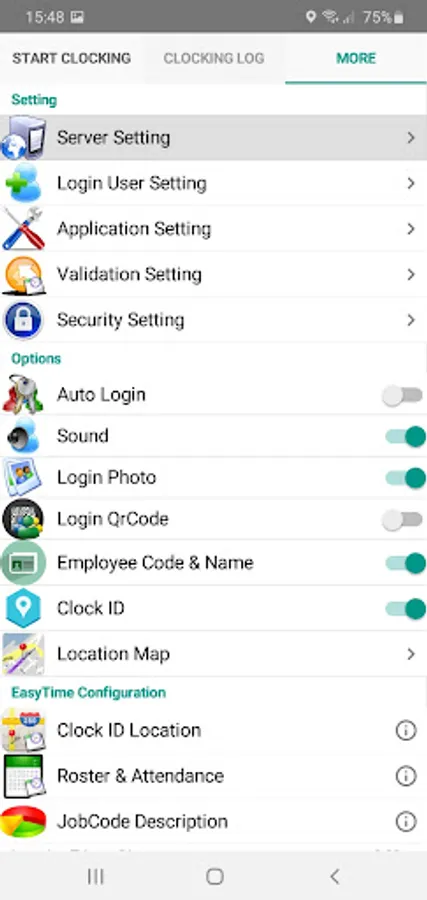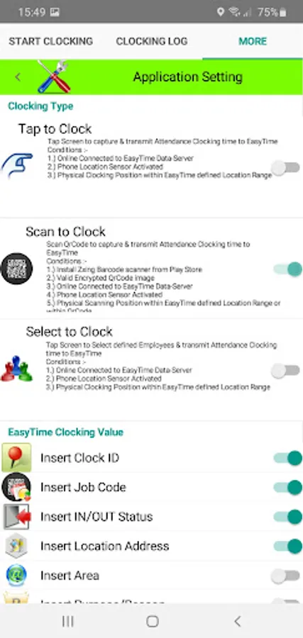Clocking App will connect and transfer clocking records into EasyTime Attendance System (backend module). Backend module then can process the staff clocking records into Attendance, Report, Payroll process...etc