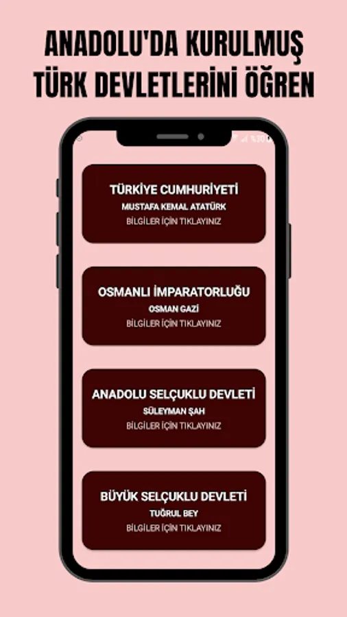 The history, stories, rulers, etc. of the Turkish states established in Anatolia. It was established to teach a lot of knowledge. There are 4 states in it: Turkey, Ottoman, Anatolian Seljuk and Great Seljuk.