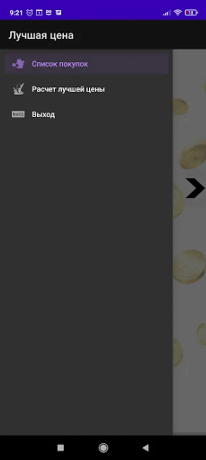 "Savings. Price per gram calculator" remembers the cost of five products that you want to compare, and displays a list of them in a window, which you can go to by clicking on the arrow.