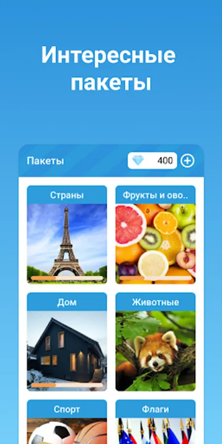 Select a package of words and start solving. In the game 4 pictures 1 word you will see 1 open and 3 hidden pictures. You need to find common ground between all the pictures and guess the hidden word.
