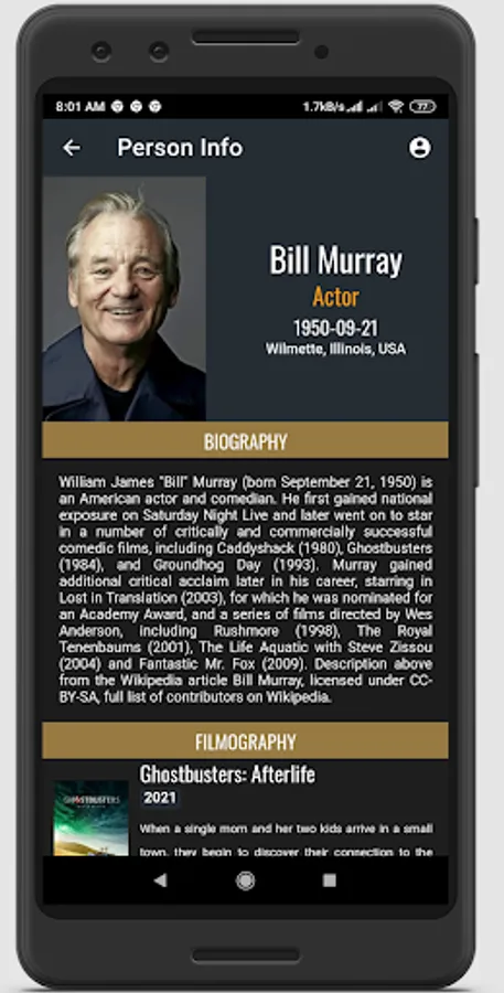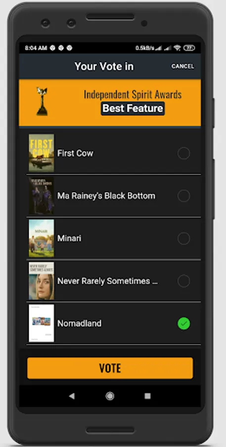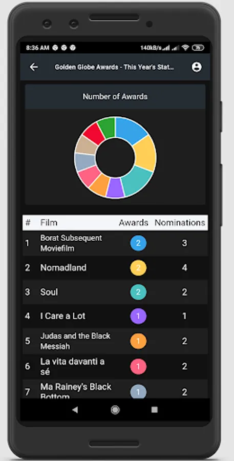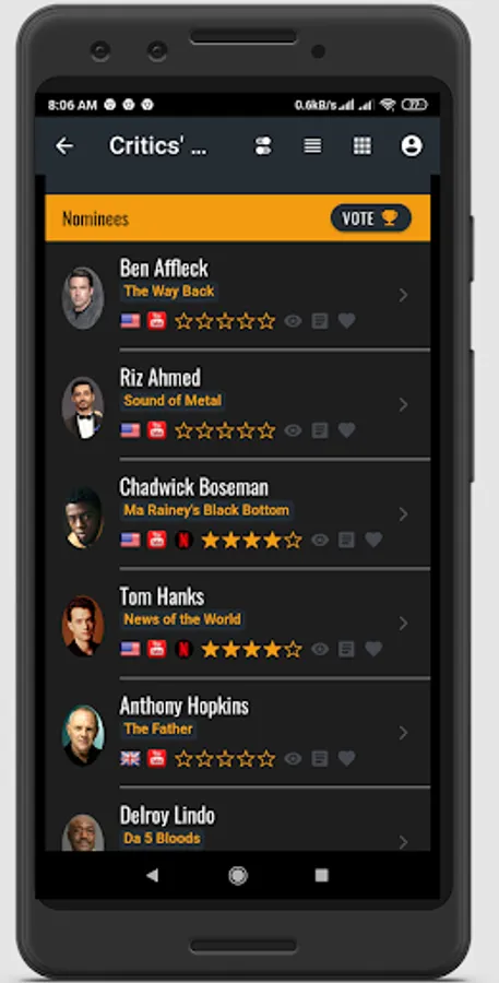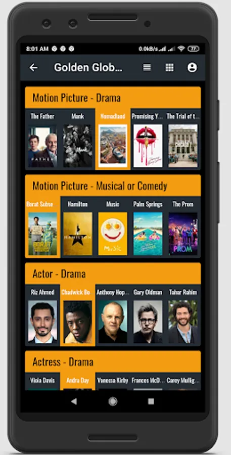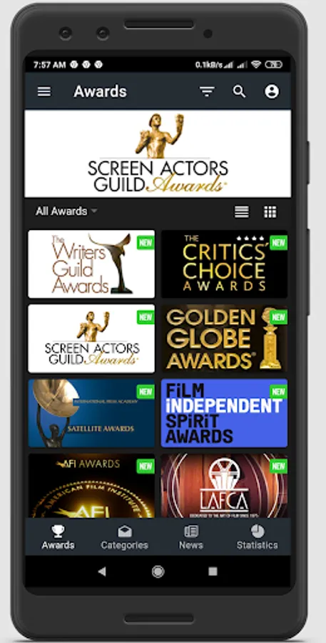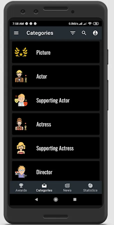 Eventually and progressively the complete list of Film Awards included in the app will be: