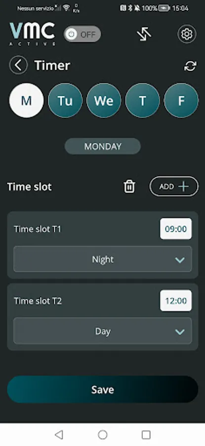 By using the weekly programming function, you can customize the operation of VMC units according to your needs. You can schedule the unit to turn on during periods of occupancy and turn off when not needed, thus optimizing energy savings and maximizing environmental comfort.