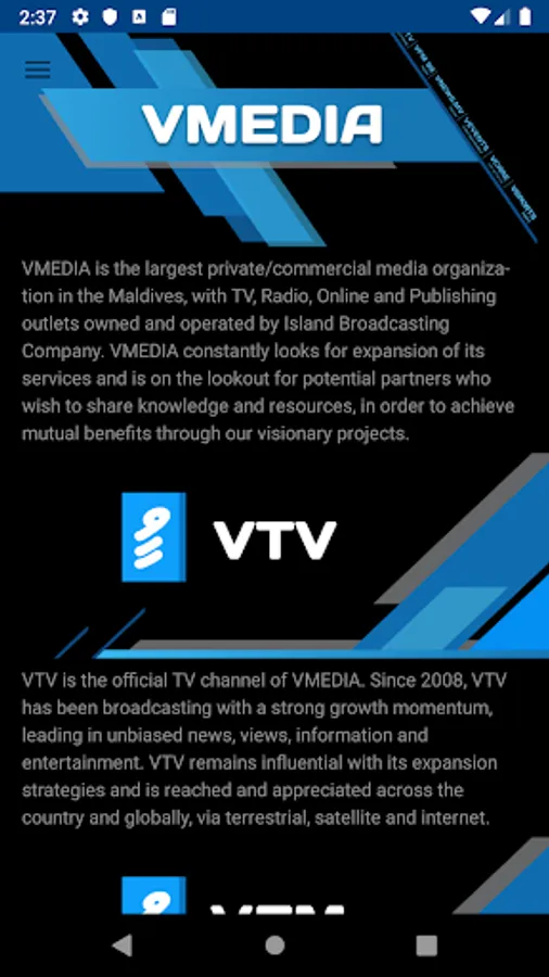 VMedia is the largest private/commercial media organization in the Maldives, with TV, Radio & Online. vMedia is owned and operated by Island Broadcasting Company. Its broadcasting channels cover 95% of the country. VTV and VFM99 broadcast contents mainly in the local language – Dhivehi. vNews.mv is the online news website which delivers update news both in English and Dhivehi. vMedia constantly looks for expansion of its services. Keep enjoying vMedia..