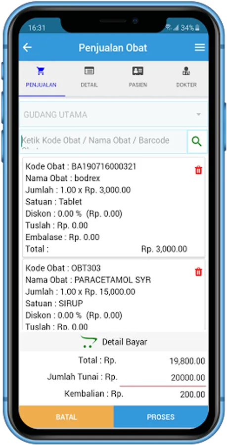 With this drug sales feature, your Pharmacy can process the sale of general medicines ANYTIME directly using your cellphone / smartphone. And even when there is a power outage, your Pharmacy can still continue the sales process by simply using an additional Power Bank so that the HP / Smartphone can be used longer to continue service to customers. So no need to worry anymore if you are still often in a Pharmacy constrained blackouts, simply provide HP / Smartphone and Power Bank only.