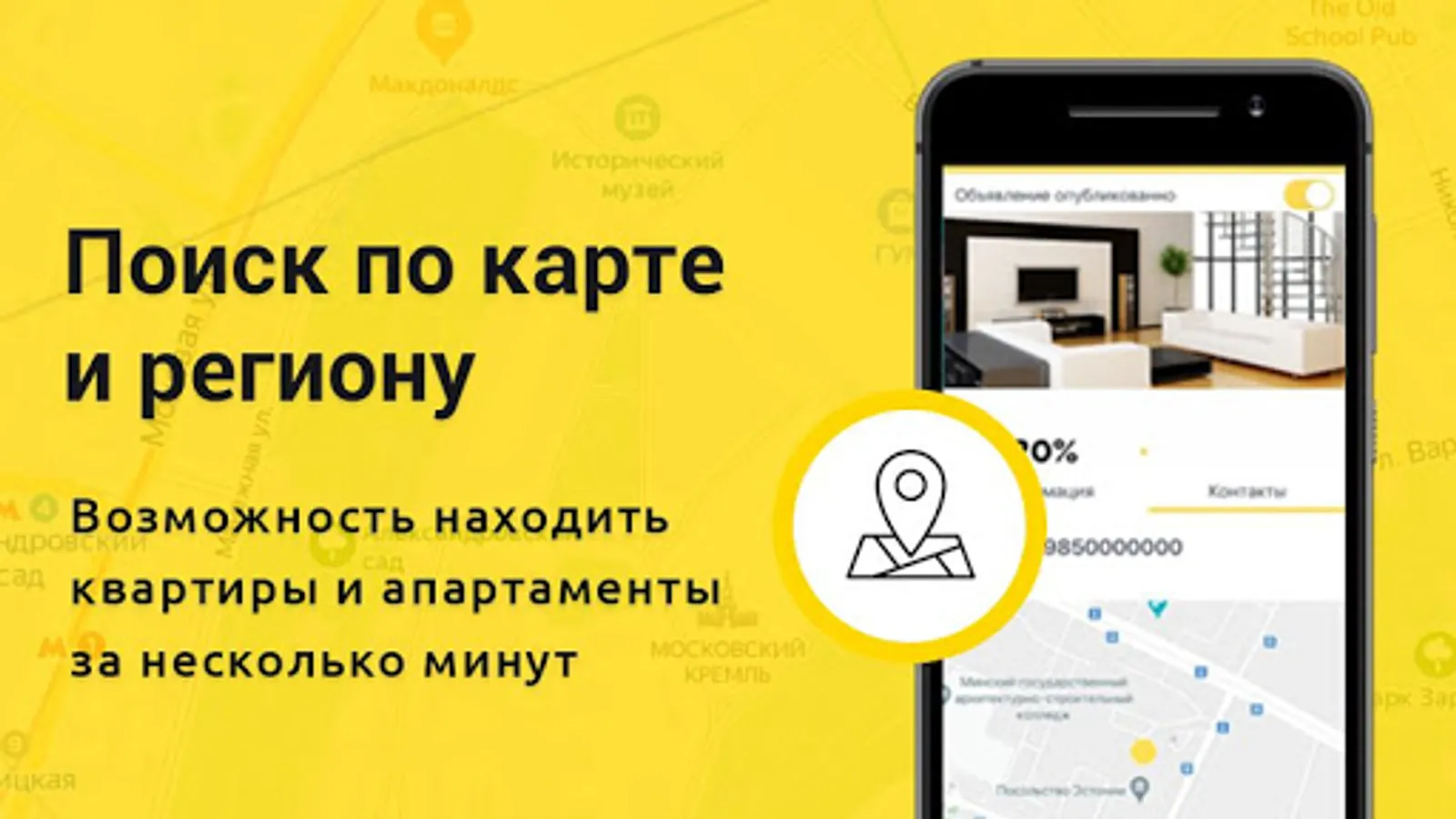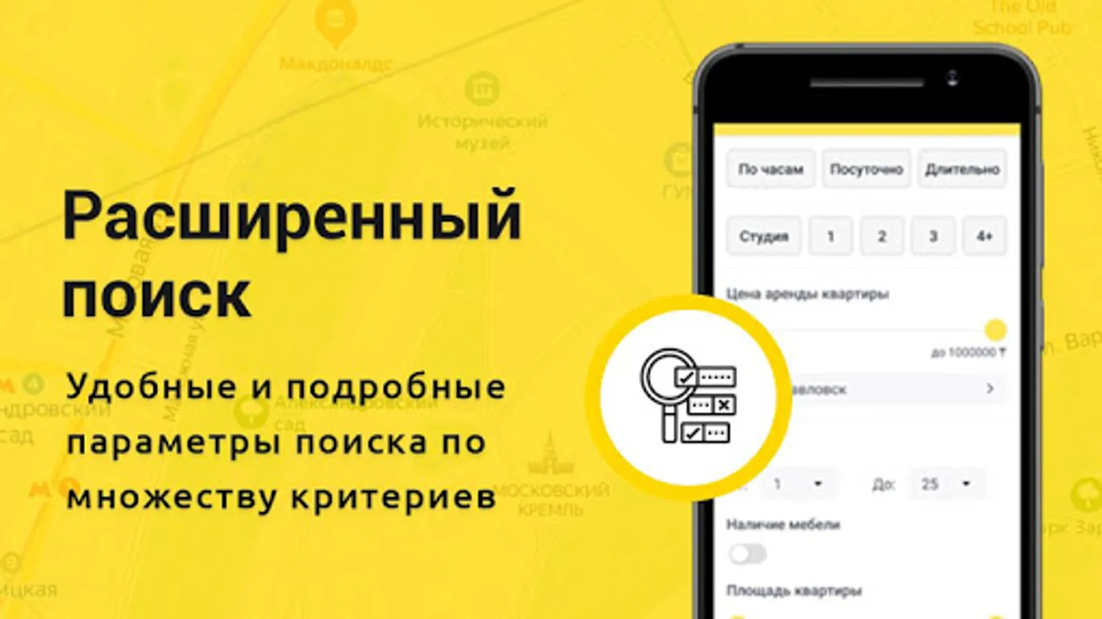 Install a mobile application where you can rent or rent an apartment, house, office. You will get access to a database of over 90,000 properties for free and quickly find the option you need. With VMESTE, searching for an apartment or a client is up to 8 times faster than searching through message boards.