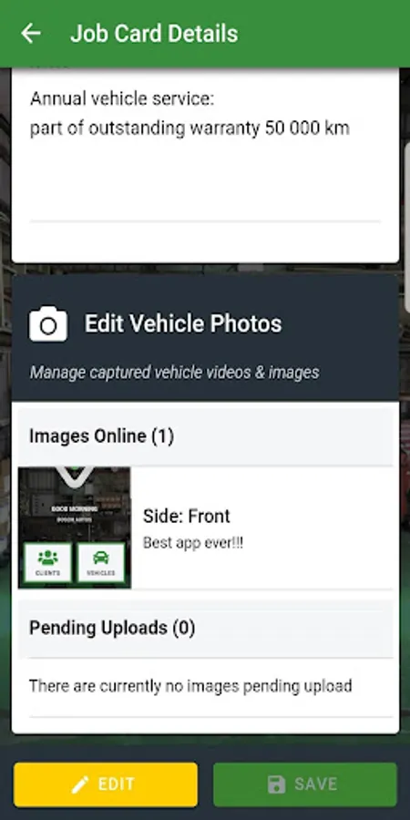 The VMG Workshop Mobile app enables your team to open and edit Clients, Vehicles, Bookings and Job Cards. It also enables your workshop team to add photos of Vehicles to Job Cards. These date and time stamped images can then be sent with Job Card data to your customers via email. Taking photos of Vehicles as they arrive protects you and your customers from misidentifying damage to Vehicles that you or your customers may feel was caused by members of your workshop team.
