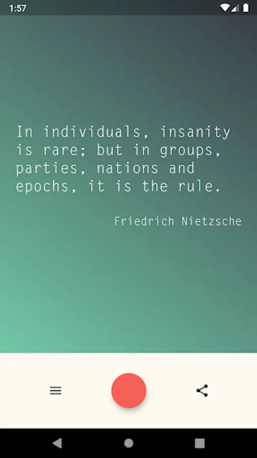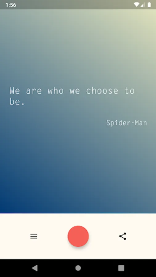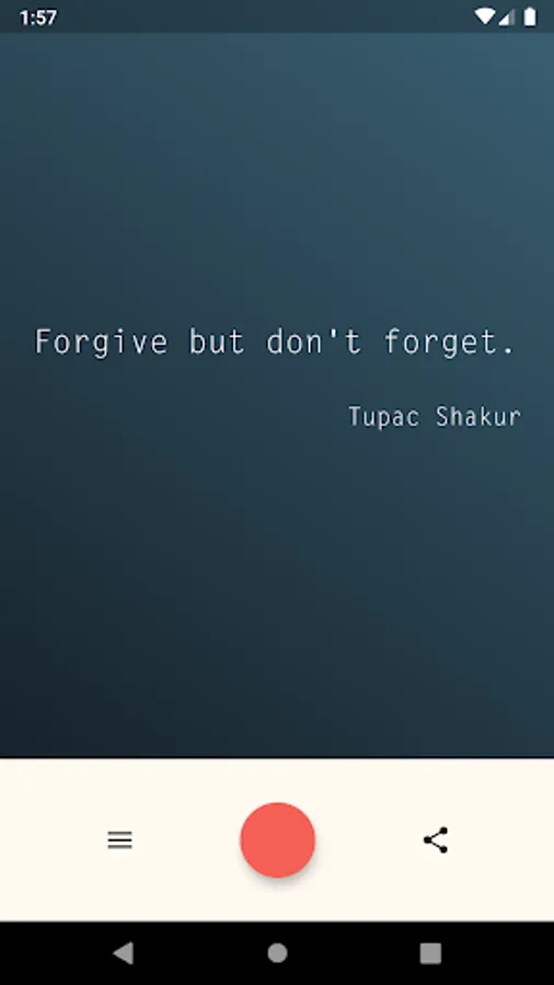 A modern and attractive design made for giving you the best sensations during the reading of the quotes. We've selected the best gradients for you, so you can share some gorgeous images on your social networks. With a simple swipe you'll be able to change the background and personalize the quotes.
