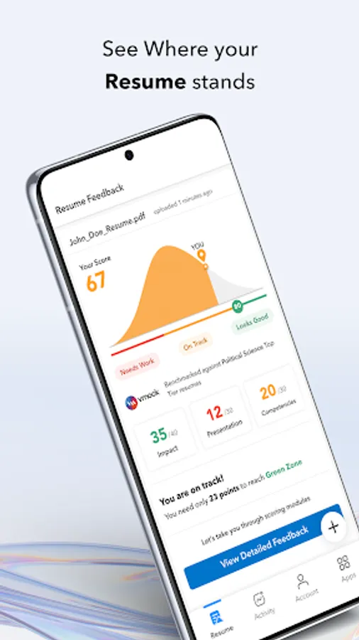 Power up your resume in no time. Download VMock Resume app and create your account today!