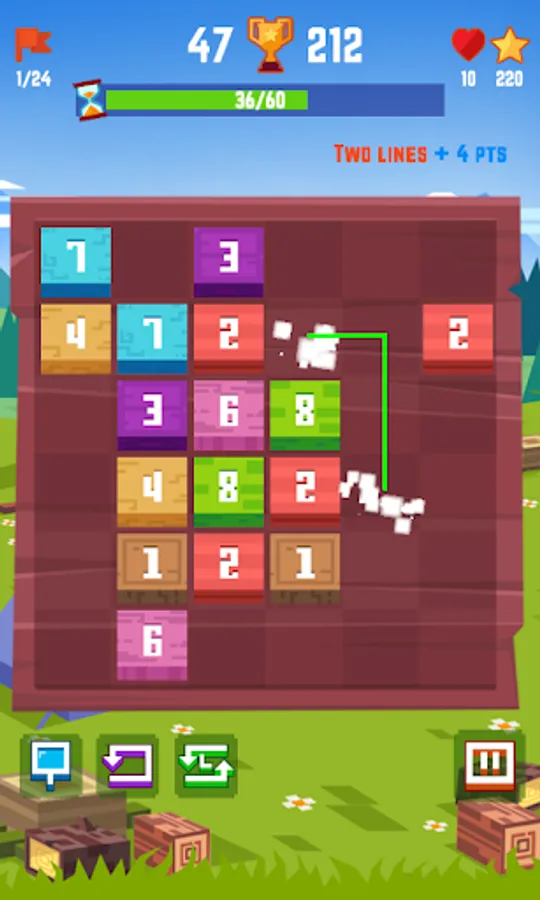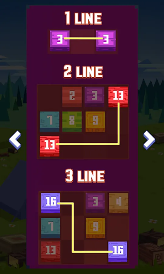 ✔ Connect 2 matching number with no more than 3 lines to clear them.