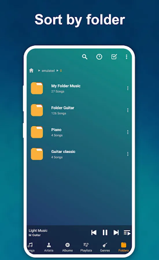 Play music by folder and album, artist, genre