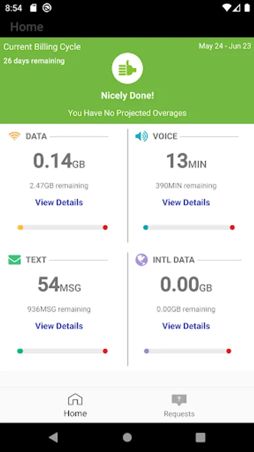 Real-time, detailed reporting including talk, text and international consumption vs. capacity, company policy and historical usage. vMOBILITY also predicts usage for the bill cycle, providing alerts for actual and potential overages