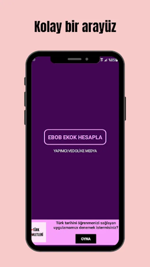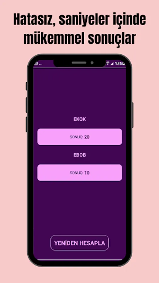 A mobile application that helps you find the greatest common divisor and the least common divisor of 2 numbers. There are Turkish and Azerbaijani language options in the application.