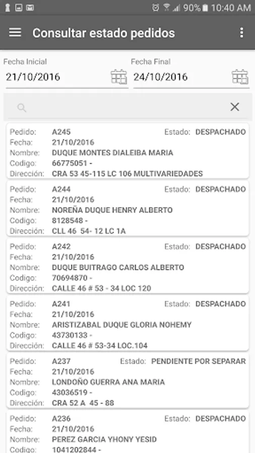 Keeps track of orders on different days, consulting their status logistics module Sifira desktop.