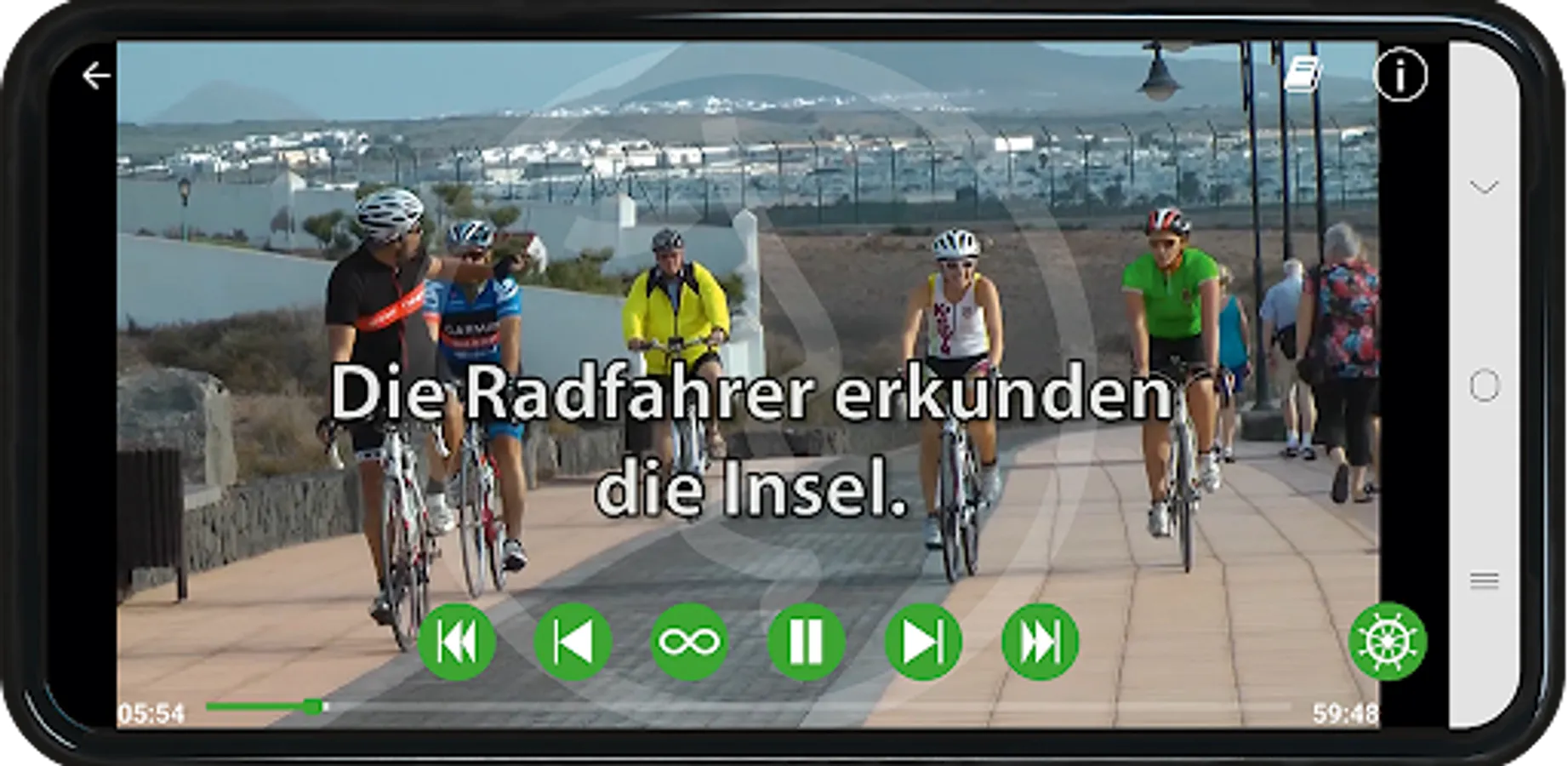 Spoken is subtitled in writing so that the German learners can associate the written images of what is spoken with the respective language sound.