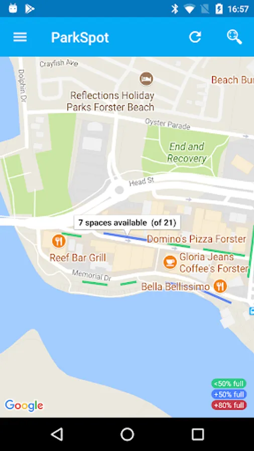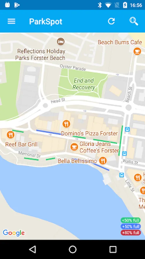 ParkSpot helps you find available parking in the Forster Waterside area.