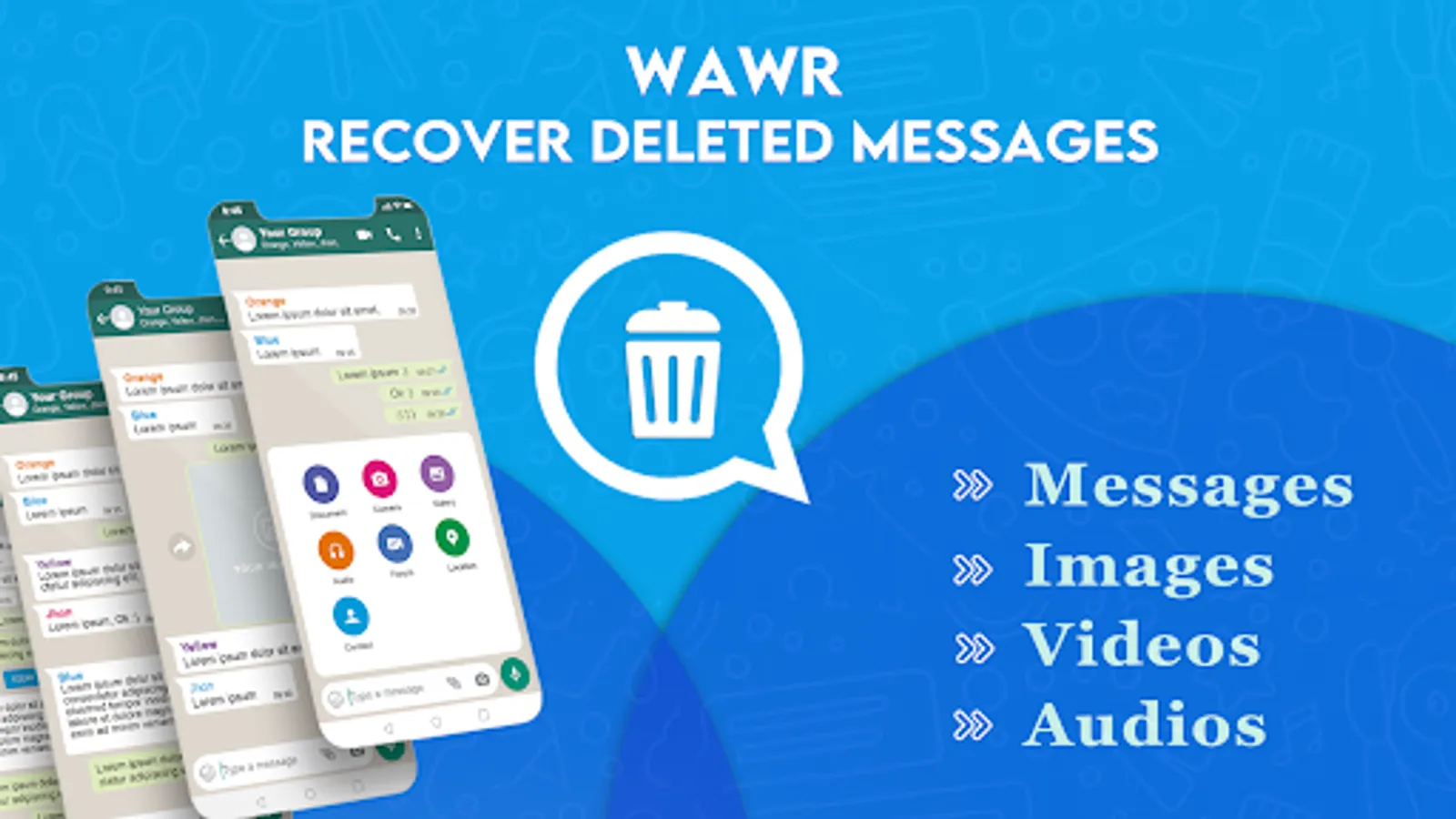 WAWR Recover Deleted Messages is not affiliated with any other application nor does it claim to own a trademark to use the name and logo of any third-party application.