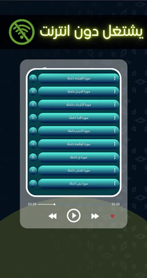 The application of Sheikh reciter Muhammad Hisham Hassan without the net contains recordings of the Noble Qur’an with: