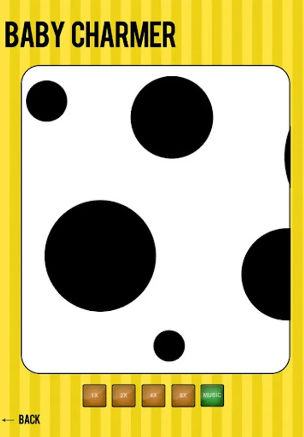 This application has 3 animations of high contrast shapes that scroll across the screen at four different speeds. You can place your iPhone, iPad or iPod in a fixed position and watch as your baby tracks the symbols and shapes. This is a revolutionary twist to the traditional high-contrast baby simulator.