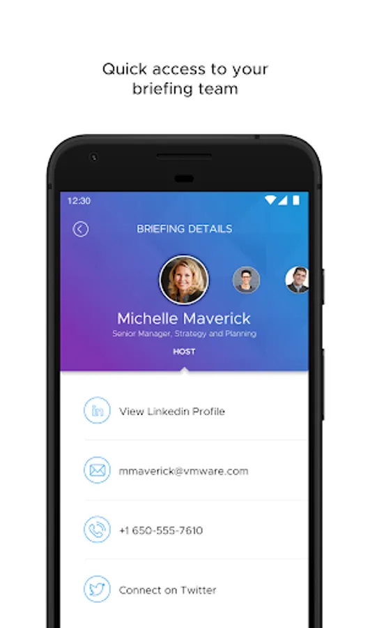The VMware Briefing App is your companion during your visit to the VMware Briefing Center. Once invited, this will allow you to interact with our rich briefing experience.