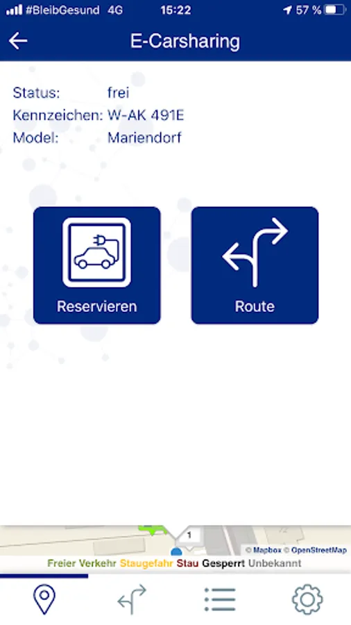 MEISTER Gewobag E-Car Sharing shows the availability of E-Car Sharing services in the Gewobag residential areas of Mariendorf and Falkenberg and the status of the charging infrastructure. By linking the apps from the e-car sharing provider Mobileee and the charging station operator ChargePoint, e-car sharing vehicles and charging stations can be reserved and used easily.