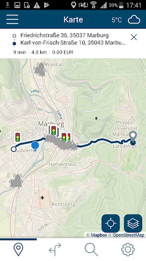 If you approach an intersection as a cyclist with the SiBike app, the traffic light automatically switches to green within a few seconds or extends the existing green phase. YuBike takes advantage of satellite navigation technology. Your smartphone determines the position using GPS and checks whether you have passed a virtual trigger point at the right speed. In this case, the app reports the activation of the trigger point to the traffic center. The traffic control center then issues a command to the traffic light controller and ensures that you get the green light.