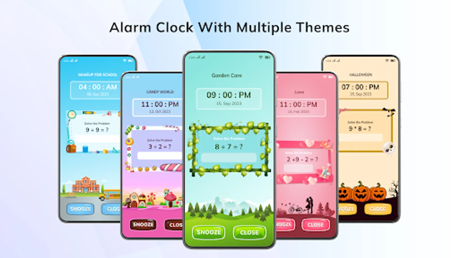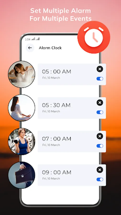 - Multiple alarm themes are available that make your alarm screen beautiful and attractive.