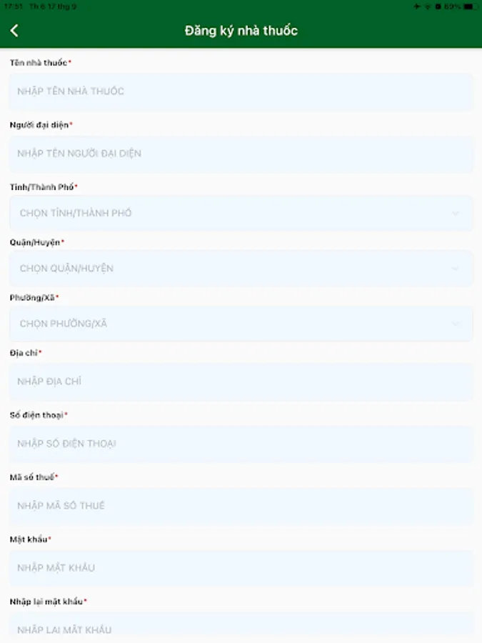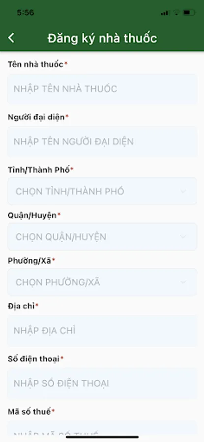 - B1: Select the pharmacy object, register personal information and pharmacy tax code information