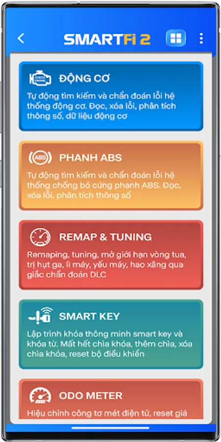 The application integrates intelligent fault diagnosis function for motorcycles and motorbikes – SMARTFi2. Support diagnostics with 12 in-depth functions.
