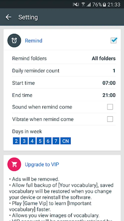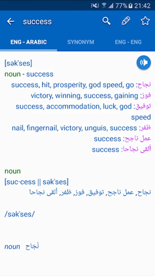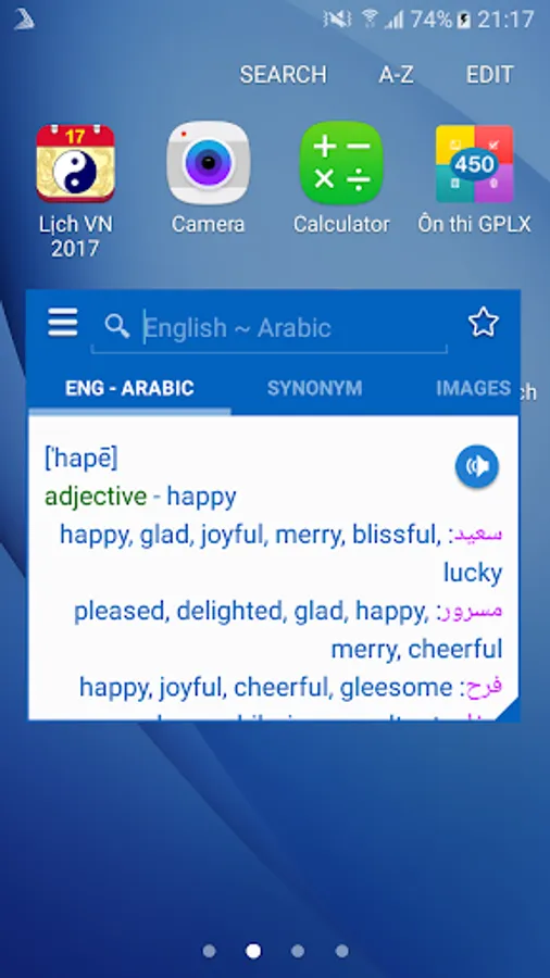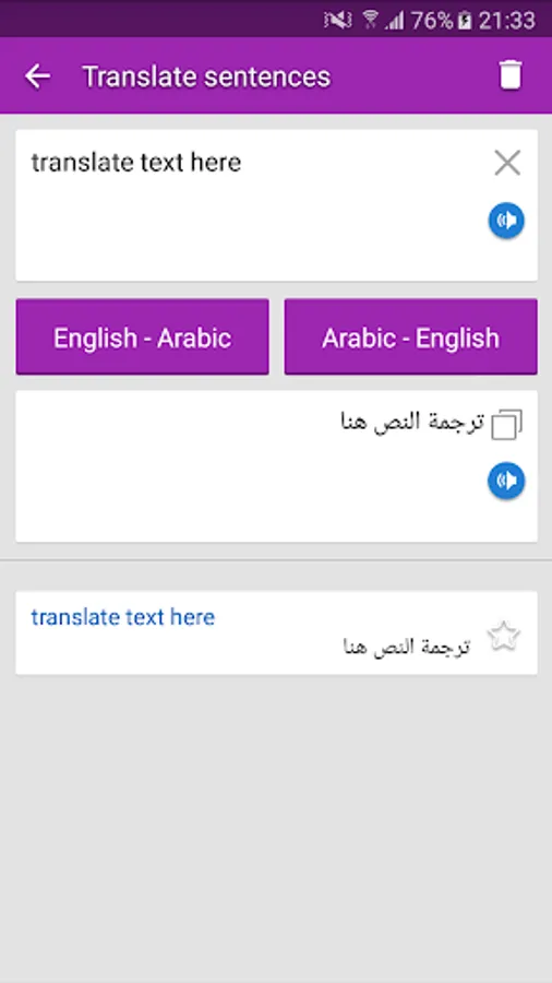 * Quick translate window: you can translate words or sentences from every application on your device.