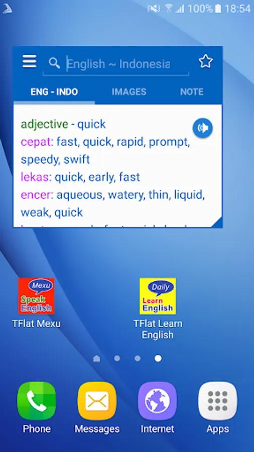 * Quick translate window: you can translate words or sentences from every application on your device.