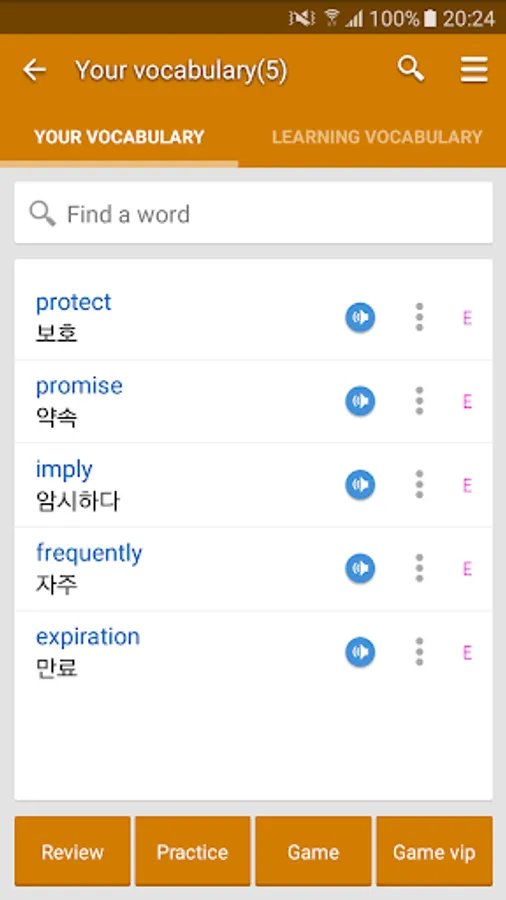 ● Vocabulary game: allow you play game to learn new vocabulary.