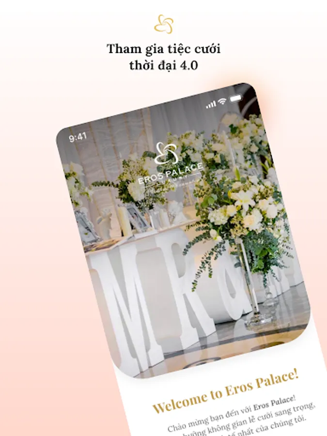 The unique experience of smart, useful and convenient 4.0 technology is only available at Eros Palace Luxury Wedding Convention Center. We are pleased to introduce and launch Event 4U - Smart App is your reliable companion in every important event.
