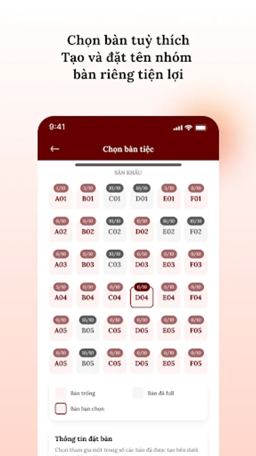 Bringing flexibility and convenience for guests to attend, Event 4U application is equipped with the additional feature of selecting seats according to your wishes, can choose seats in the area near the stage or in the central view area, .. at the event. Wishing to bring great and satisfactory experiences to guests when using services at Eros Palace Luxury.