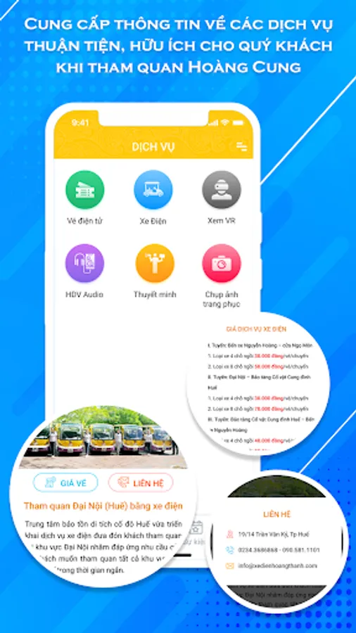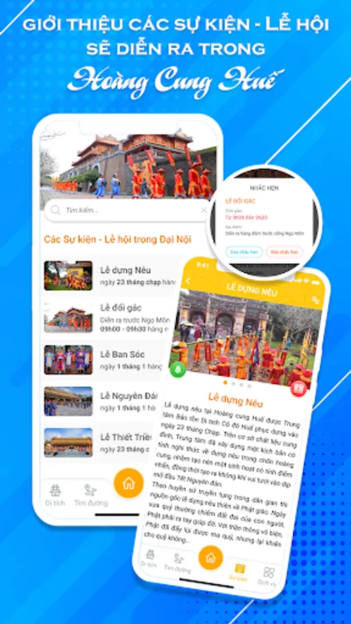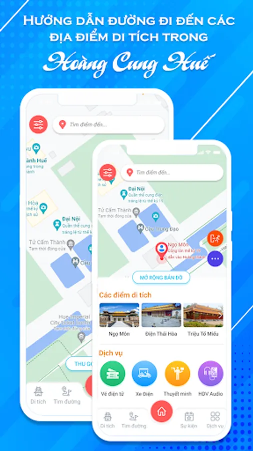 Using the app makes your sightseeing experience better. In addition to providing information and pictures of destinations, festival events, the application also supports navigation for palaces and sightseeing works in Hue Imperial Palace, helping you to visit in the easiest way. .