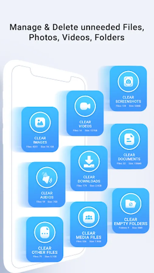 - Scan and identify all types of unneeded files on your device, including duplicate files, cache files, temporary files, empty folders, and more.