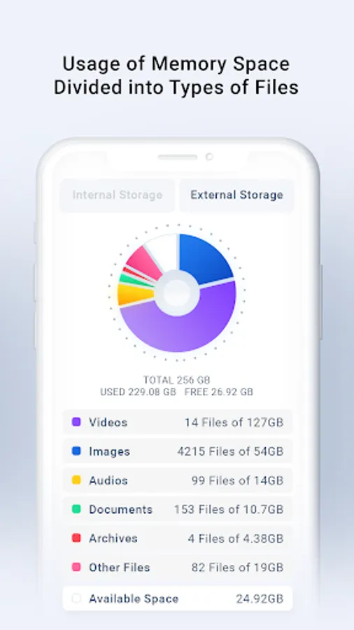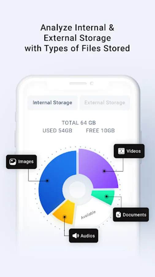 - Manage other files like documents, audio, APKs file from internal storage.
