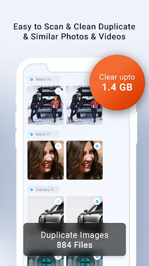Clear storage space from unwanted data like duplicate photos / files, cache memory, temporary files, large files and more.