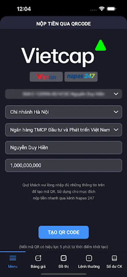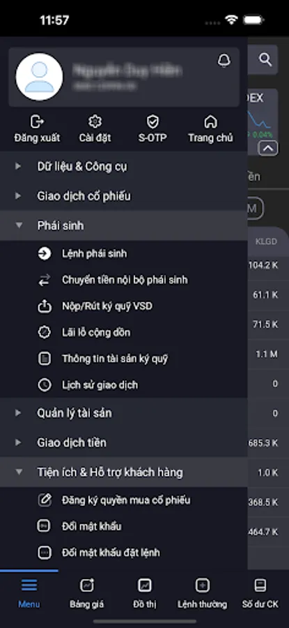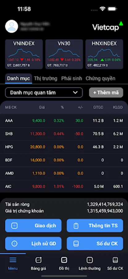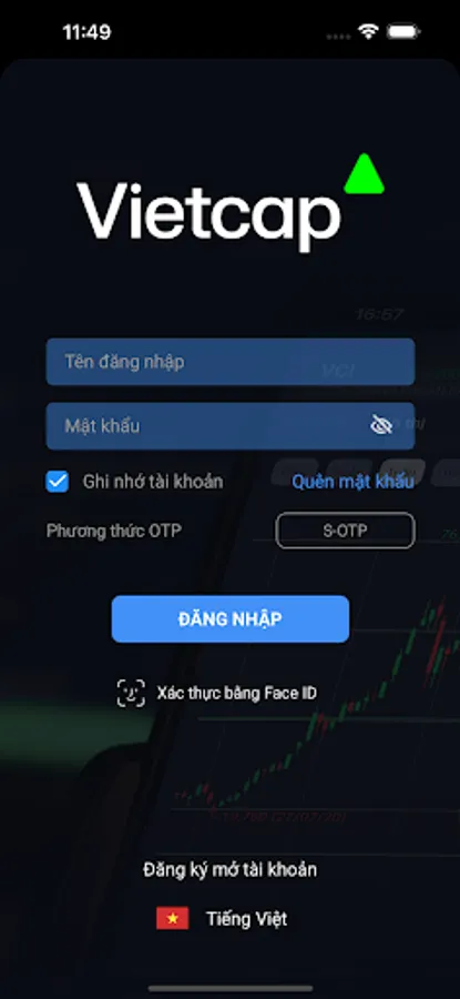 Trading application via smartphone of VIETCAP Securities Joint Stock Company.