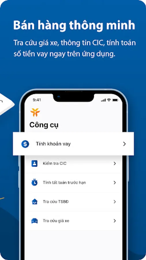 Smart Sales is a smart sales application developed by the Digital Transformation Center, with a series of useful features to help sales staff sell anytime, anywhere, reduce up to 80% of the time to process loan applications, solve 24/7 decision-making from customers, thereby boosting sales.