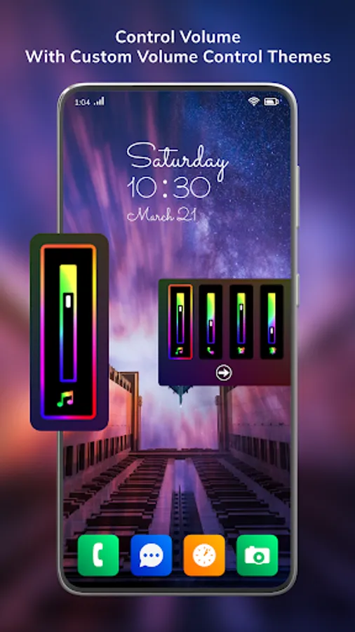 Get new look to your volume panel with stylish designed volume bar operator. They are sure to stand out and make using volume control settings very interesting. Many theme designed volume panels that you can select. Get operators for Music Volume, Call Volume, Alarm Volume, System Volume, Ringtone Volume from pop-up window.