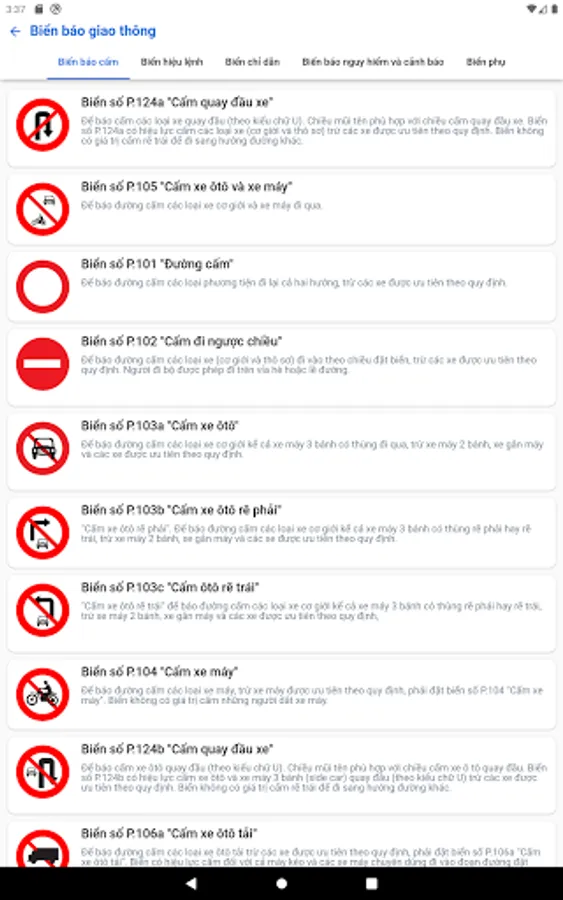 • A list of all signs appearing in 600 questions of the test helps you quickly refer to the signs in case of need.
