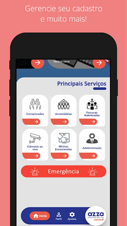 Welcome to the Azza / Vianet App. With it you can manage your data, register your dependents and employees, view your orders, authorize visitors and service providers and much more.