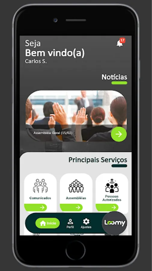 Welcome to the Loomy Smart Solutions App. With it you can manage your data, register your dependents and employees, view your orders, authorize visitors and service providers and much more.