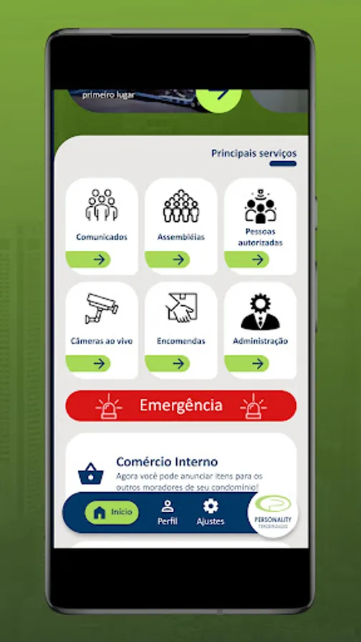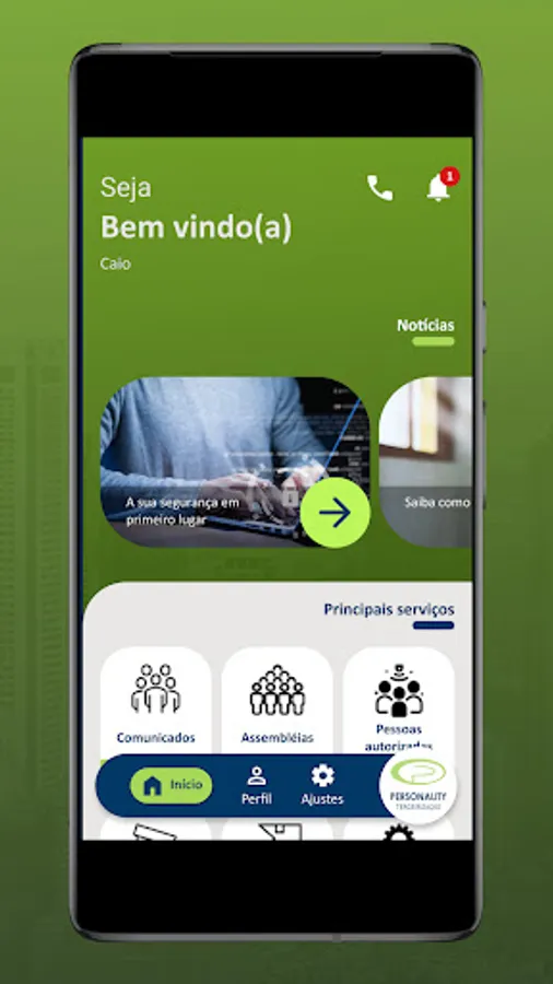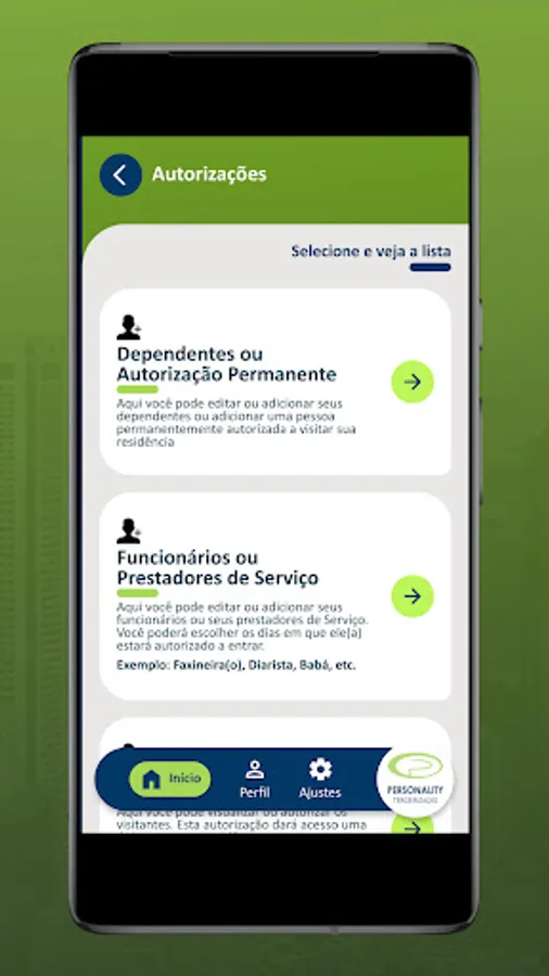 Welcome to the Personality App. With it you can manage your data, register your dependents and employees, view your orders, authorize visitors and service providers and much more.