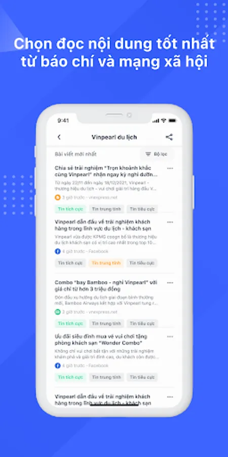 VnAlert continuously monitors thousands of online newspapers, news sites, blogs, websites with quality content and uses Artificial Intelligence to automatically analyze and help users monitor and read quality information. VnAlert is optimized for Vietnamese content and Vietnamese people's experience.