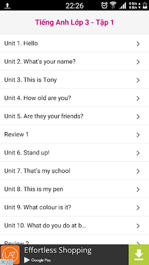 - Mỗi bài, mỗi phần có hình ảnh hiển thị cùng audio minh họa.