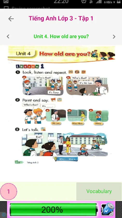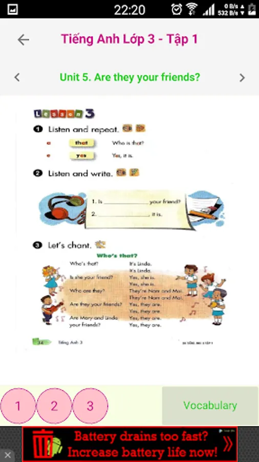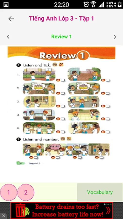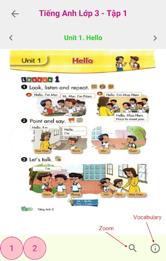 - Bấm vào các số bên dưới trang sách bạn sẽ nghe được nội dung của bài học đó.