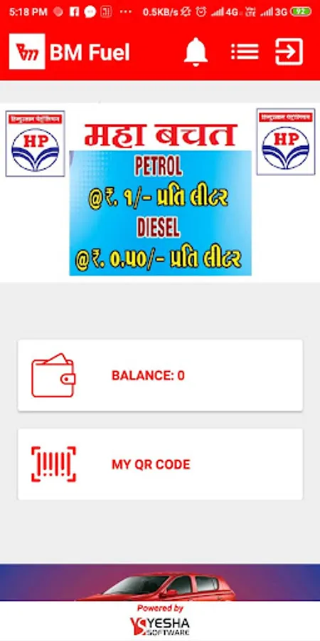 B.M. FUEL Mobile app will provide extra incentive/ benefits for fueling to our customers. When a client login to App. He/She need to show QR Code to petrol pump attendant. Once the operator scan your code and feed the amount of fuel you want to fill you will get extra cash back in your app balance. User can use his/her Wallet balance to Our Fuel Stations Only.