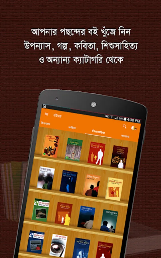 - Read Bangla ebooks from any genre of your choice, and enjoy the best reading experience on your smart android device – be it a Smartphone, Tab or Note.
